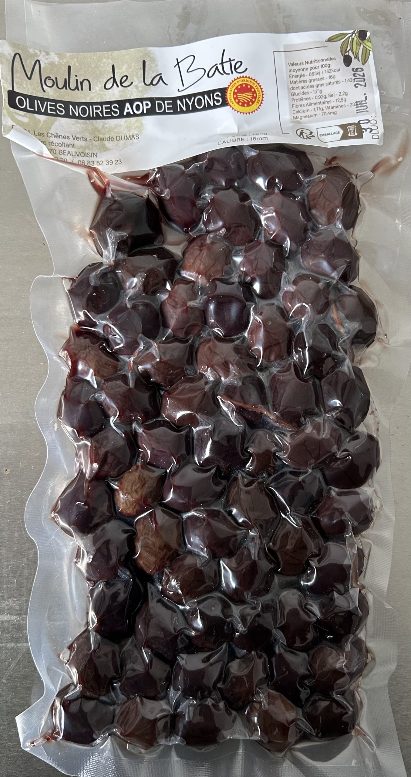 L’olive noire de Nyons est une variété emblématique de la Drôme provençale, bénéficiant d’une AOP (Appellation d’Origine Protégée). Récoltée à pleine maturité, elle se distingue par sa chair fondante, sa couleur brun-noir et sa saveur douce et légèrement sucrée. Elle est appréciée en apéritif, en cuisine ou transformée en tapenade.